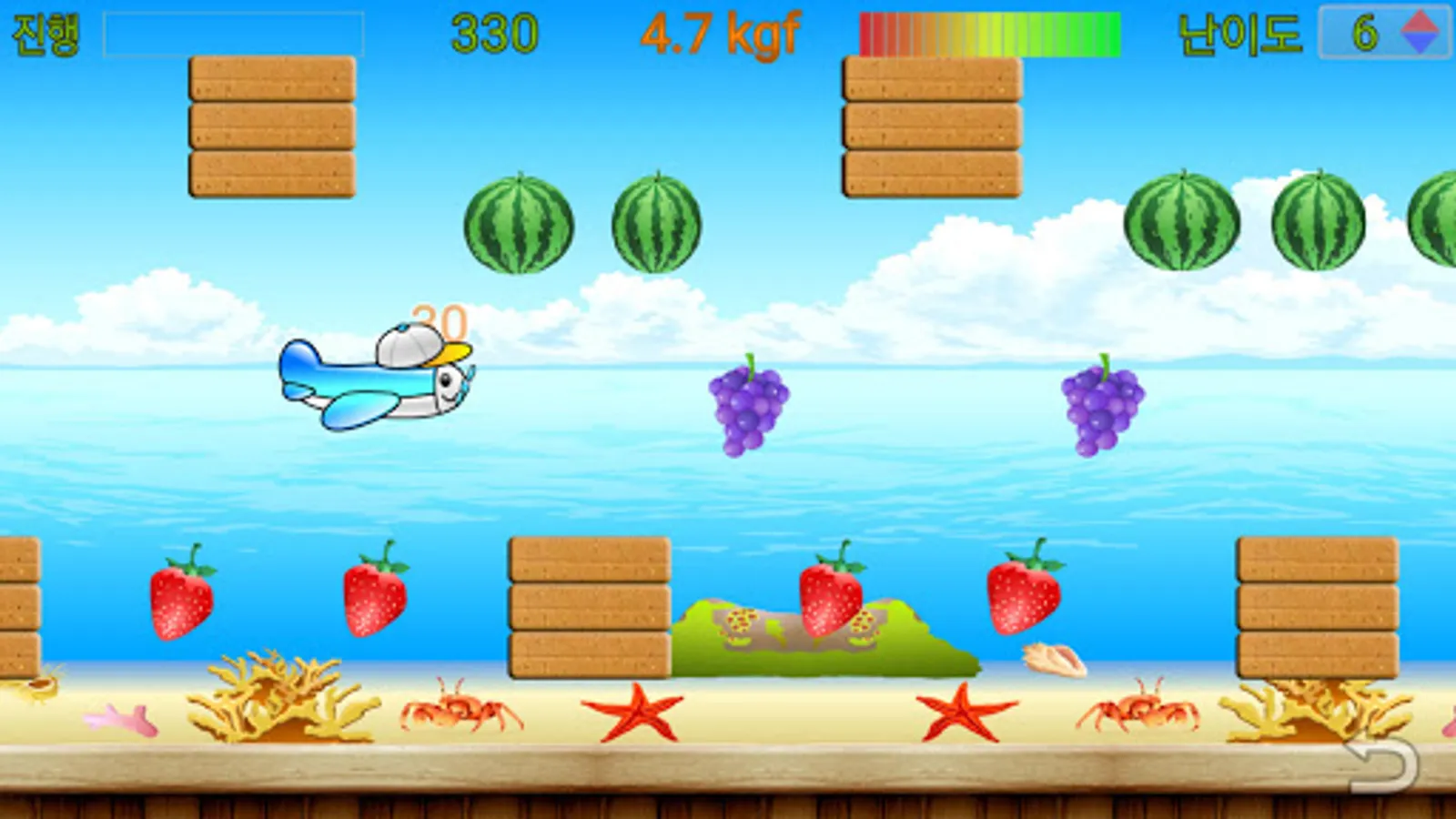 -Game 2 mode: Fruits floating in the sky to give strength to the pelvic muscles, but in the middle