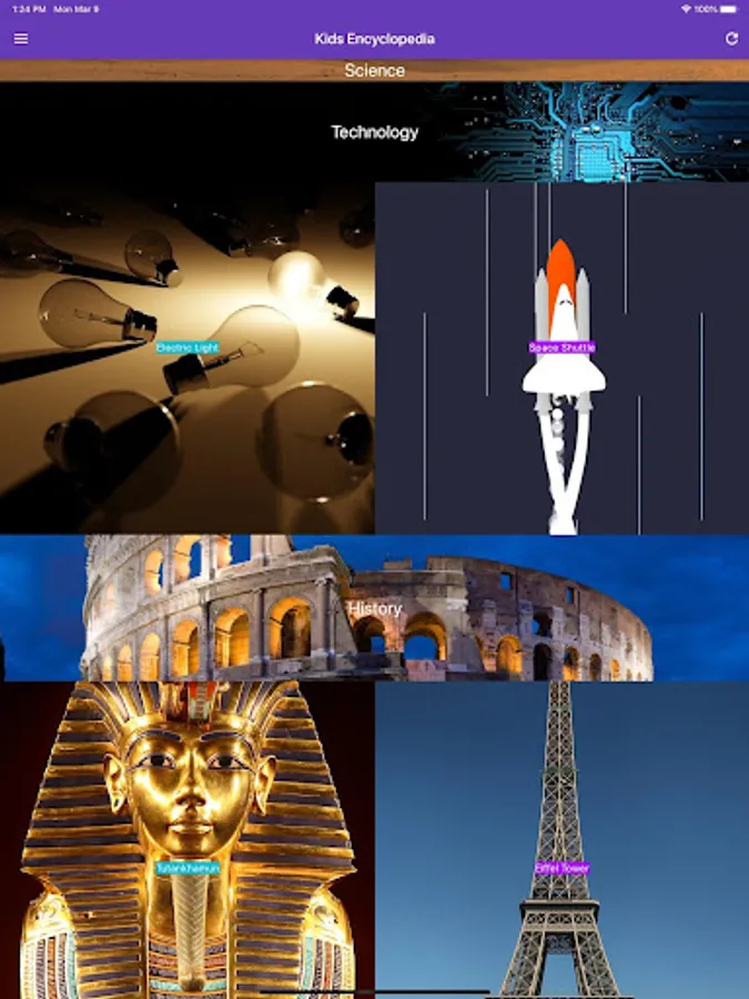 Learn about the Solar System, Tutankhamen, The Eiffel Tower, The Seven Continents, Michelangelo, Dolphins, Electric Lighting (Light Bulbs to LEDs), The Space Shuttle and more!