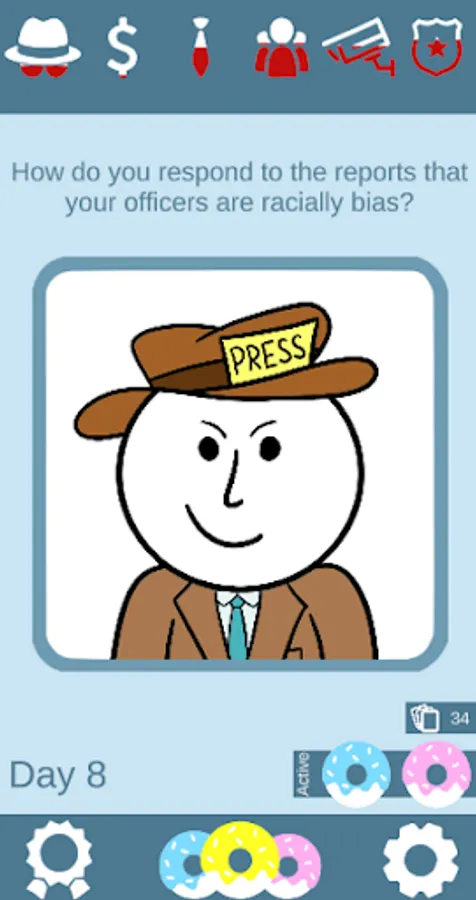 * Decide what choice you want to make, keeping in mind all of your resources - public opinion, money, staff, public safety, mafia, and politics.