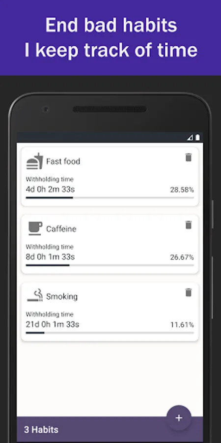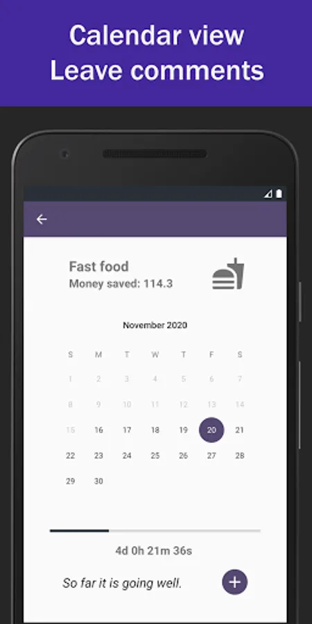 Choose between consumed time or money and let the app show you your progress for every day that goes.