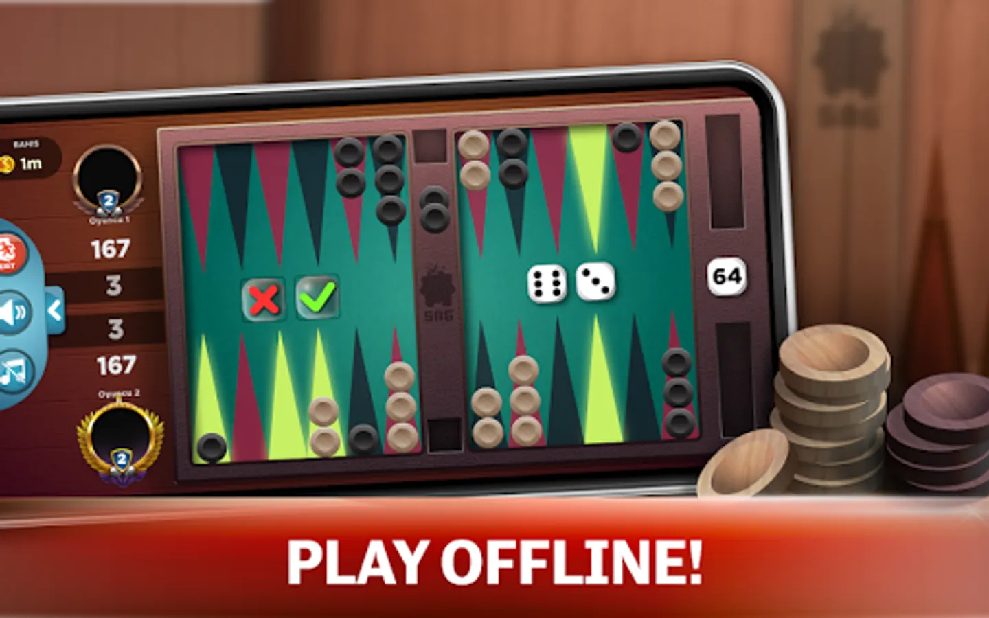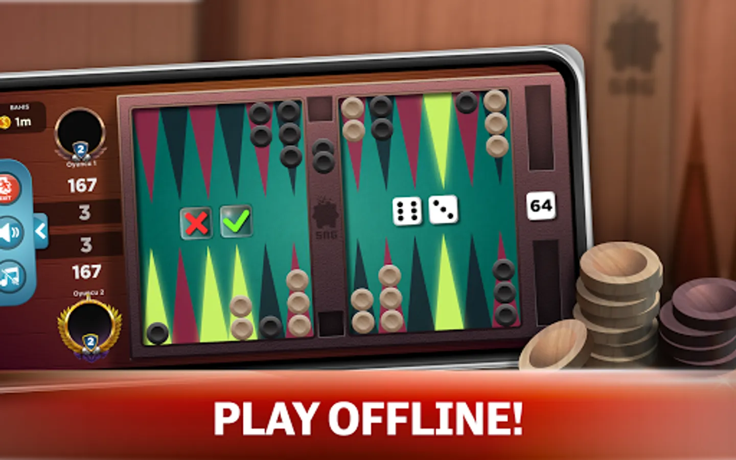Backgammon by SNG is now available for android mobile phones and tablets with its high quality and superior artificial intelligence. You can download the best Backgammon dice game for free. Our main contribution is offline backgammon plus high level artificial intelligence.