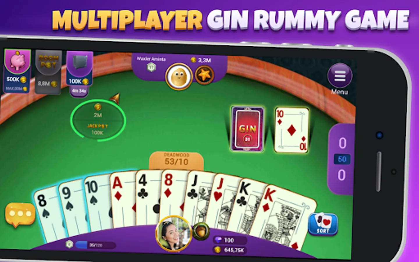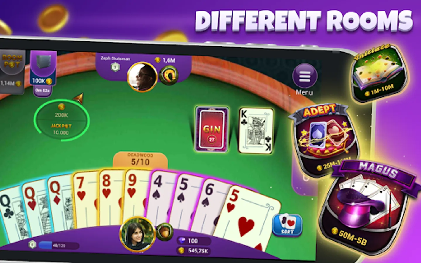 Gin Rummy by SNG is now available for android mobile phones and tablets with its high quality. Download now and play for free. You can play Gin Rummy with your friends anywhere you want in real time. You can earn millions of chips and play in high-bet rooms against real users if you are really a good Gin Rummy player.