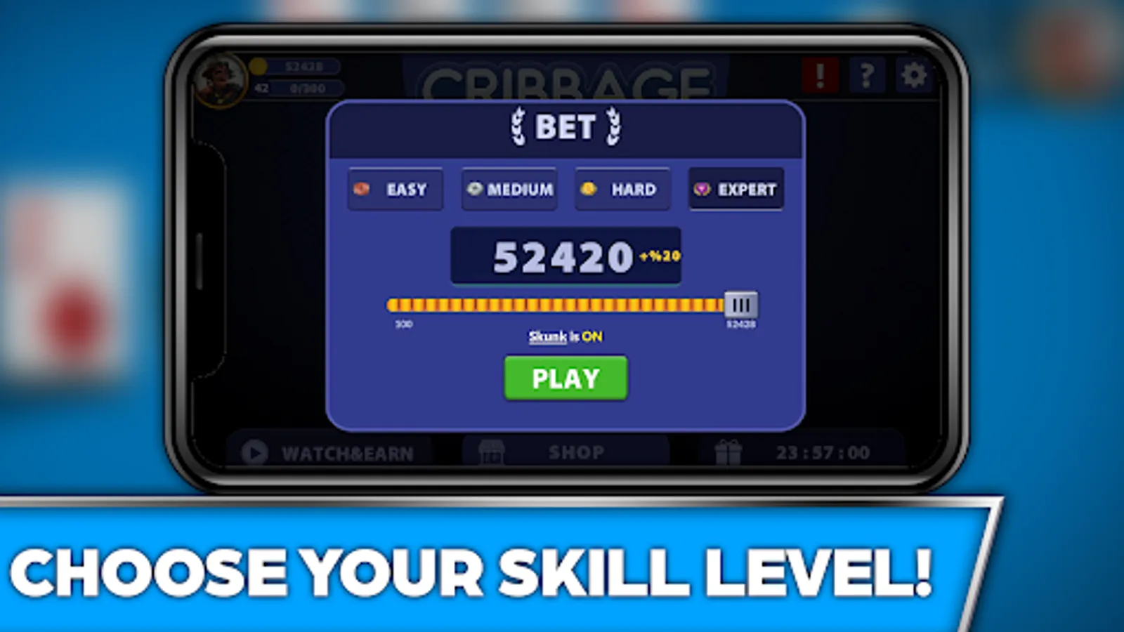 Cribbage is a game that has been enjoyed by players for centuries, and now it is available to play on your mobile device. With our app, you can play against the computer in four different difficulty modes: Easy, Medium, Hard, and Expert. Each mode offers a unique challenge and provides a great way to improve your skills.