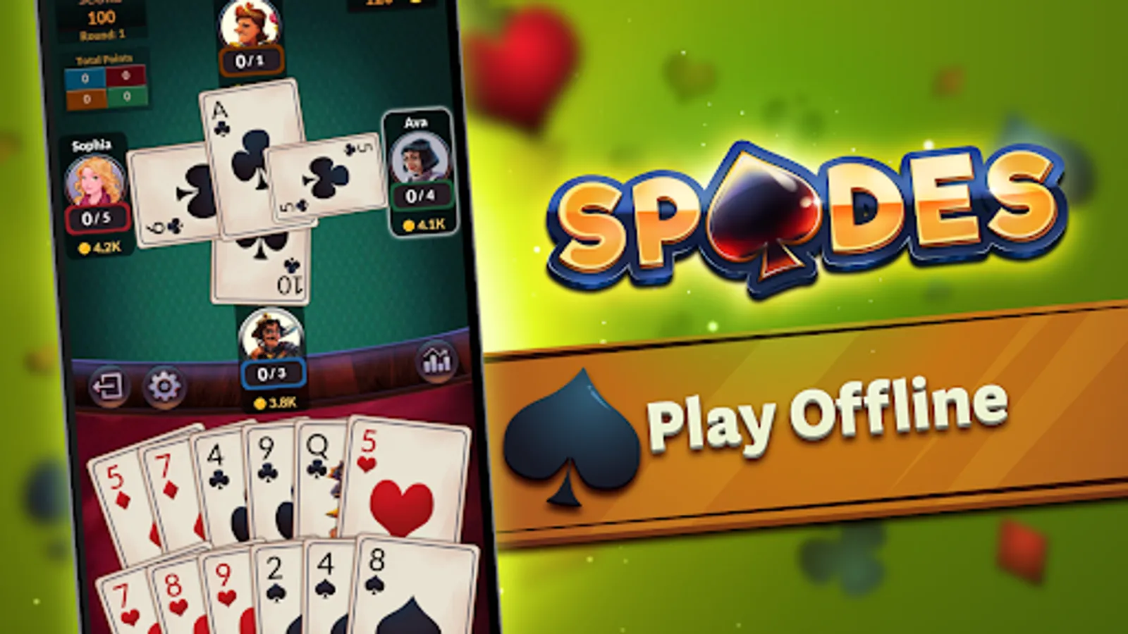 Enjoy the essence of the classic Spades cards game, specially conceived for your mobile phones and tablets. You will play the best Spades game available. This will be your best ever experience on an offline Spades game!