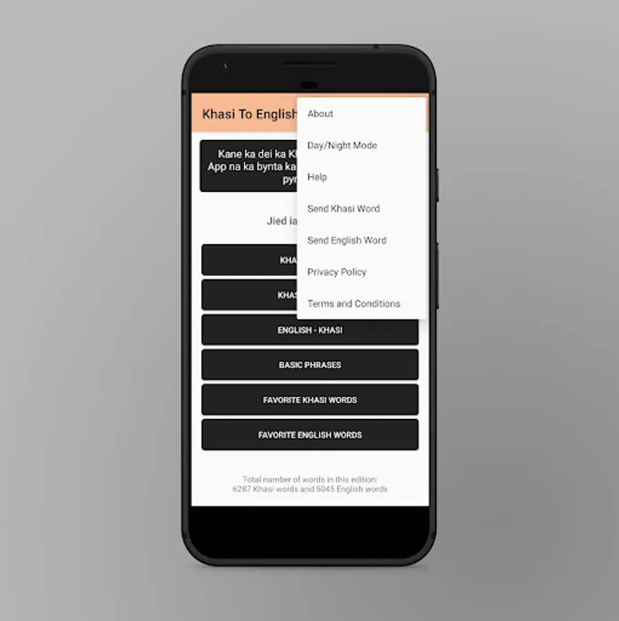 Currently we have around 6000+ Khasi words and 5000+ English words in the second release of the Khasi To English Dictionary app.