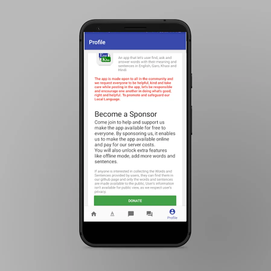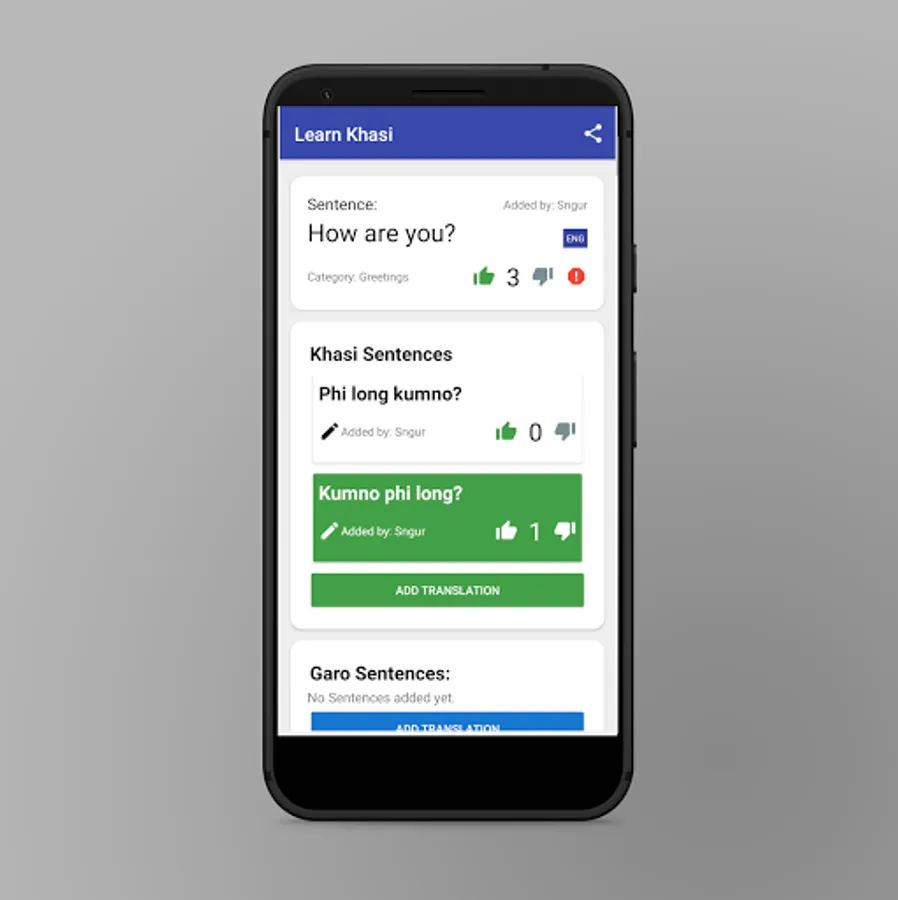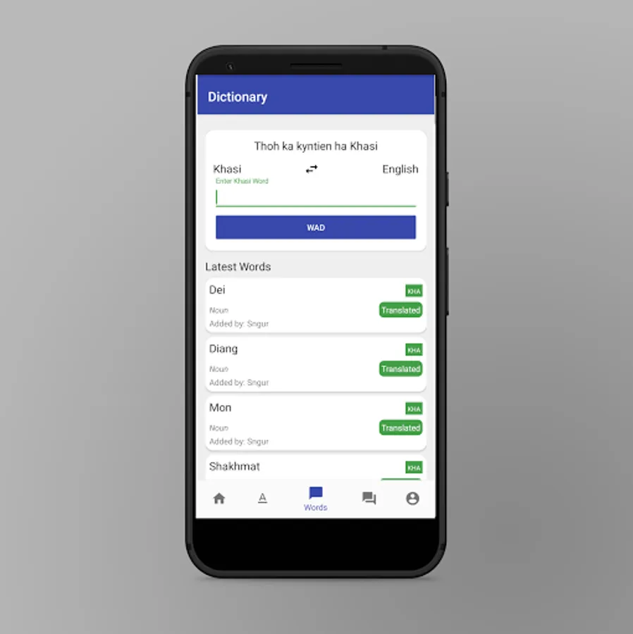 An app that let users find, ask and answer words with their meaning and sentences in English, Khasi and Garo.