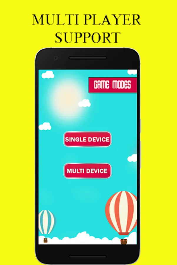 Game modes - There are two game modes -> Single player and Multi player. In single player mode, you will be competing with Android whereas in Multi player mode, you will be having a real opponent either playing in the same device or different Android devices.