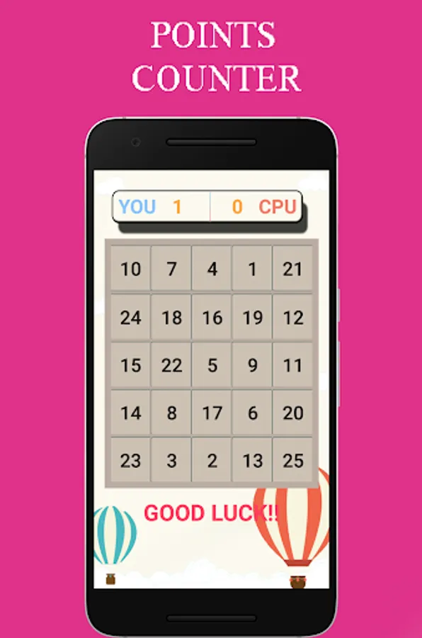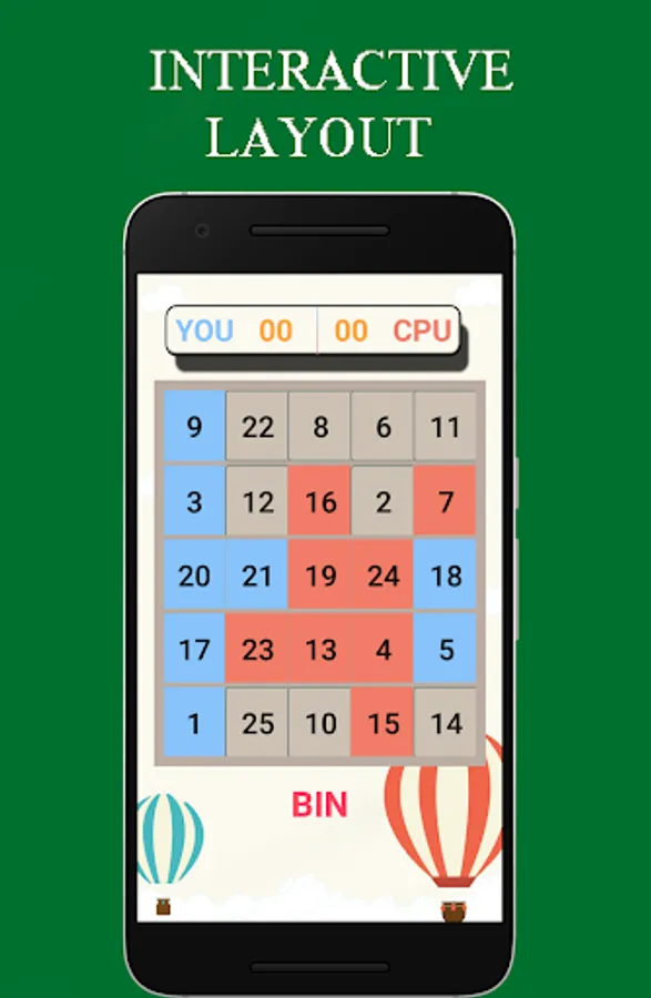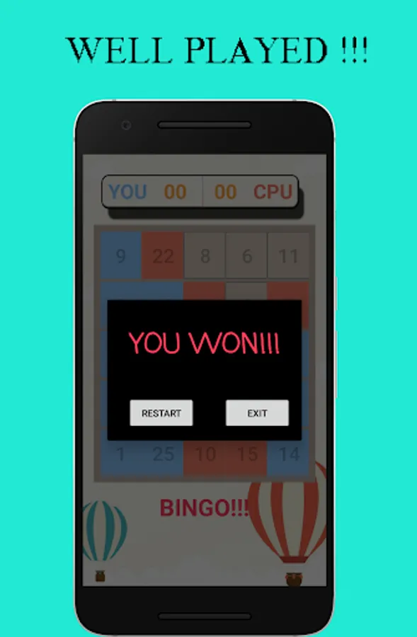 Game Board - A simple, easy to recognize board with 25 blocks where you can either fill the numbers randomly ranging from 1-25 manually or by clicking the shuffle button on the top right corner. The numbers selected by either players will be highlighted with different colors for more distinct gaming.