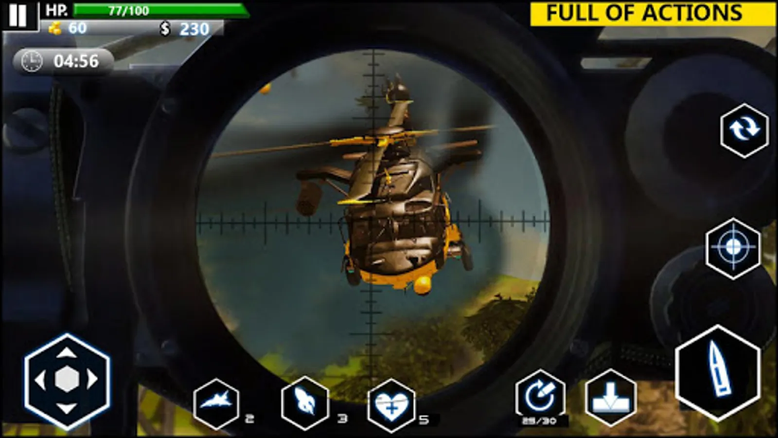 Another important combat mission of this sniper 3D shooting game involves frontline action for terrorist hunting. Survival becomes less in counterattack operations. This free shooting action game includes the use of medical packs which have now become very important.