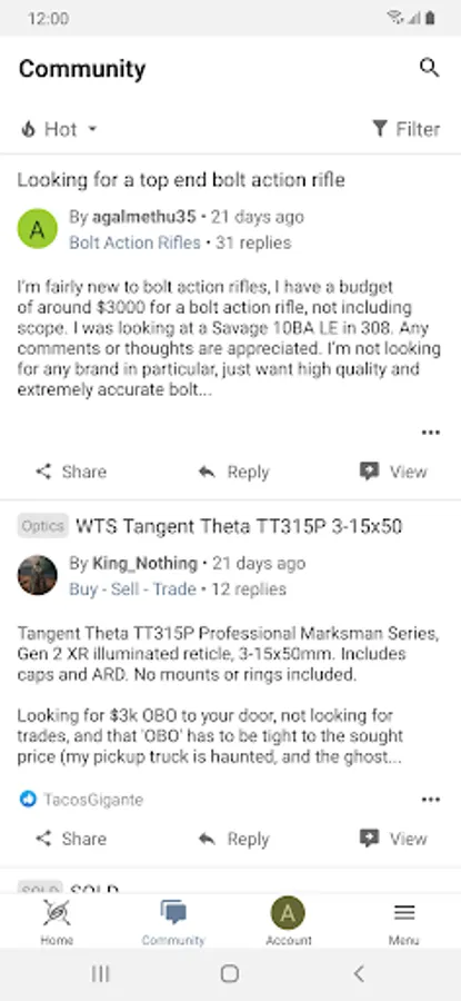 Welcome to the Sniper’s Hide community! Everything you loved about engaging with our community now in a mobile experience. Enjoy quick access to the latest activity, custom gesture support, and set preferences for what you receive notifications about.