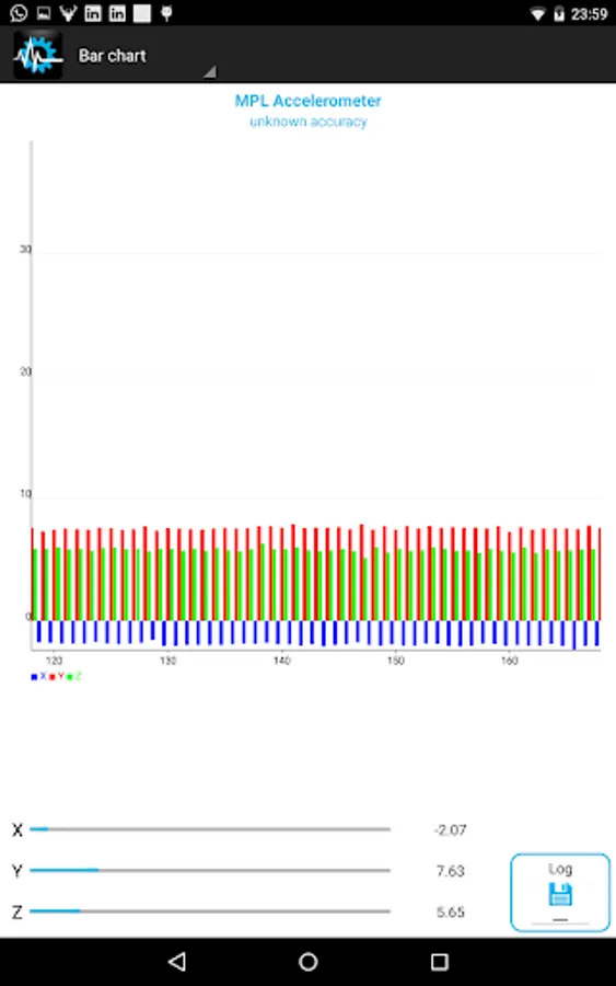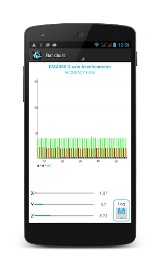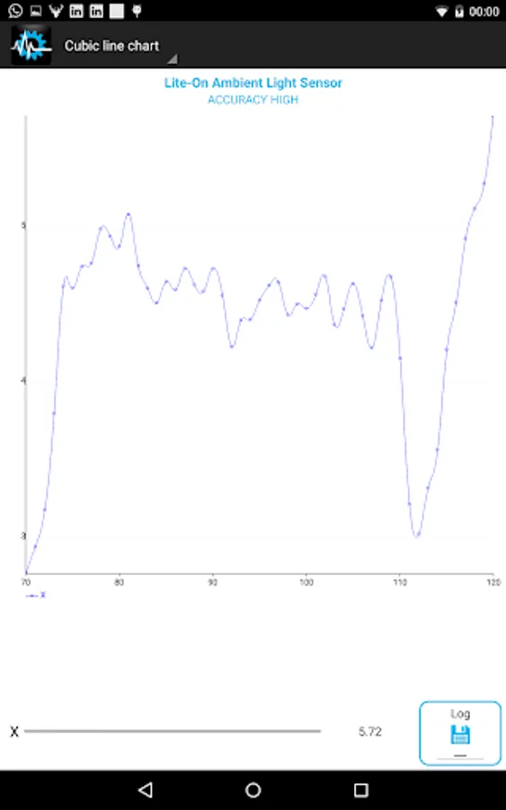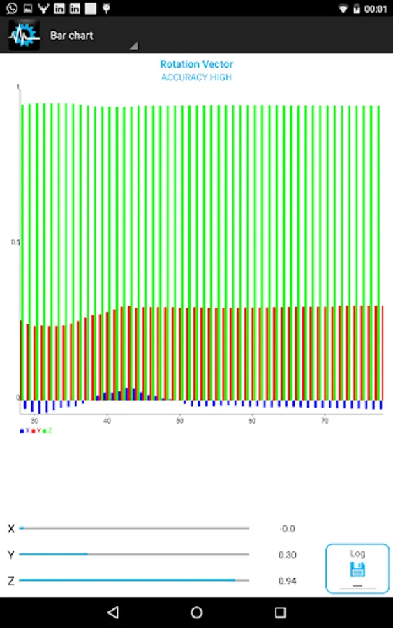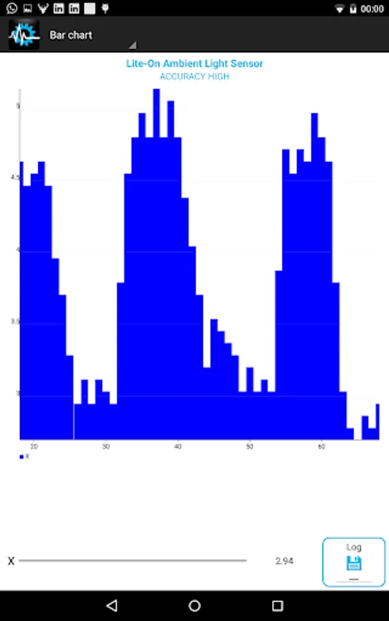 - Graphs: You may choose how you want values to be displayed, via real-time charts or the good-old text layout. You may switch between graph and text output for each sensor by tapping on the sensor image on the left side. Sensors that have available graphs are distinct by the icon in the top left of the sensor specific section. Graphs are not available for Location and Proximity.