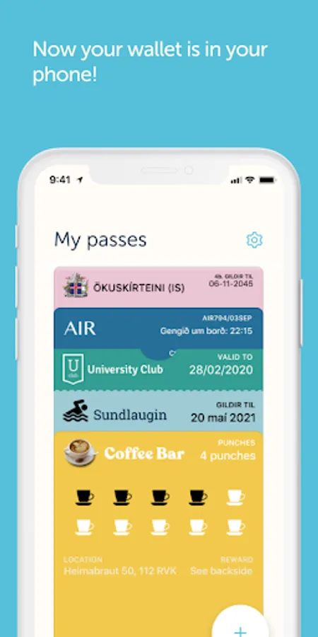 Í SmartWallet getur þú geymt og notað alla stafrænu passana þína auðveldlega. Það skiptir ekki máli þó þú gleymir veskinu þínu heima því nú er það í símanum þínu. En þar getur þú geymt skilríki, skólakort, sundkort, klippikort og allt það helsta sem þú geymir í veskinu þínu í dag. Þú munt heldur ekki missa af umbunum eða viðburðum og alltaf vita verðmæti passana.