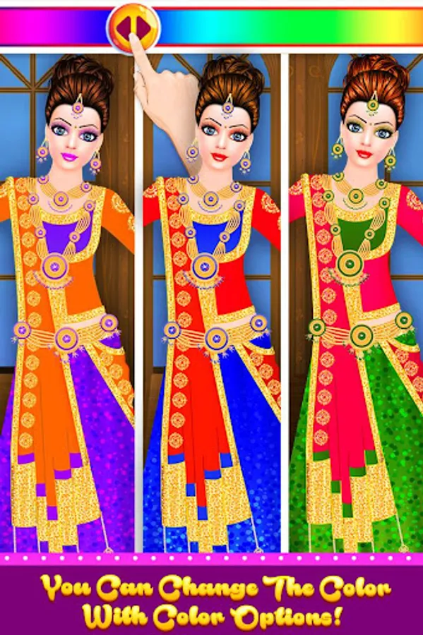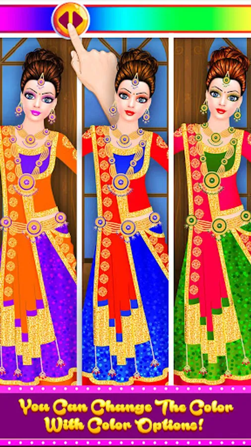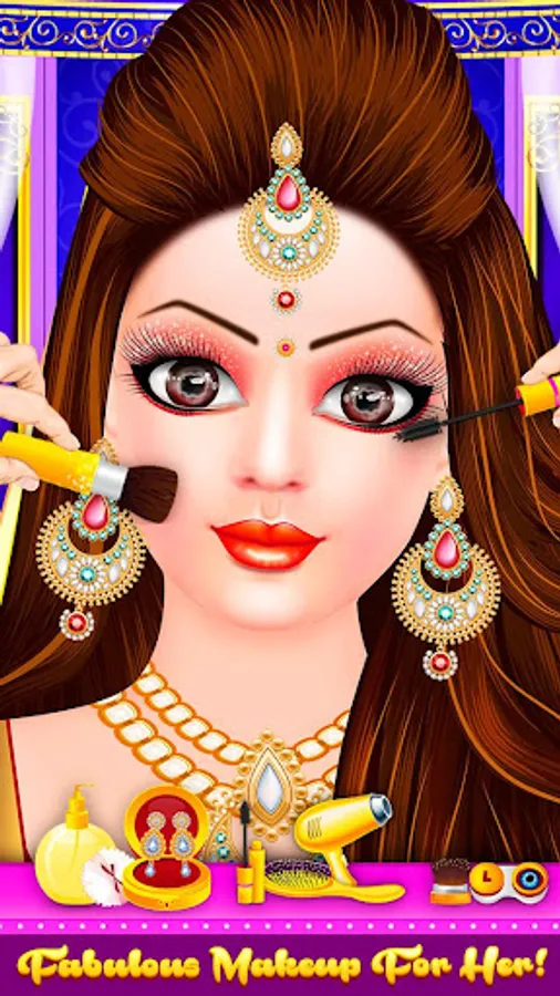 Do you girls like royal makeup and traditional clothes? If so, get 'Gopi doll Fashion salon - Dress Up Game', one of the newest dress up games for girls with beautiful & trendy clothes, and enter a world full of glossy makeup products and super traditional dress and trendy accessories.