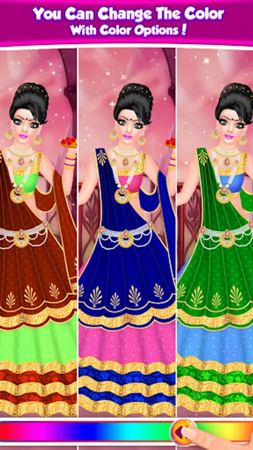 Do you girls like makeup and traditional clothes? If so, get 'Gopi doll Fashion salon - Dress Up Game', one of the newest dress up games for girls, and enter a world full of glossy makeup products and super traditional dress and accessories.