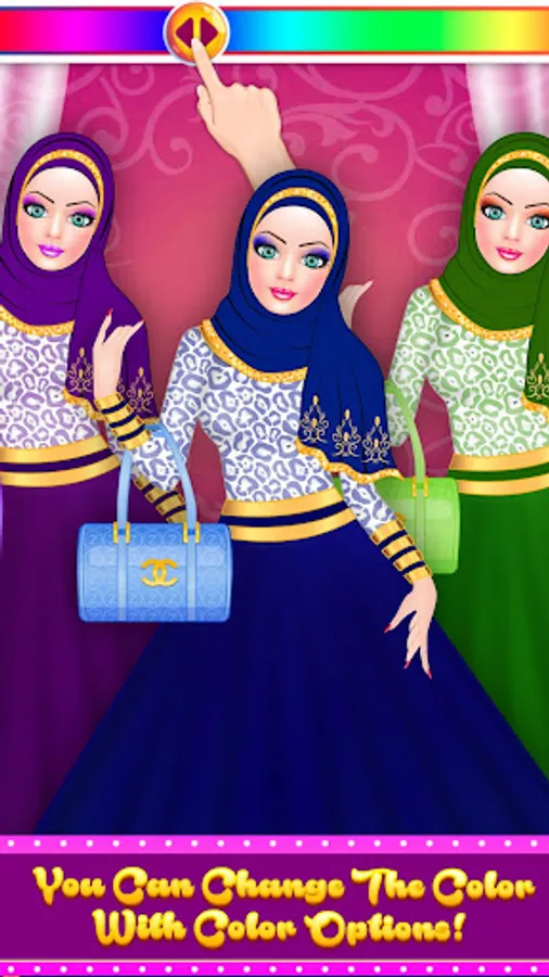 - Give her delightful look with beautiful Hijab; you can change the hair color by sliding the color option