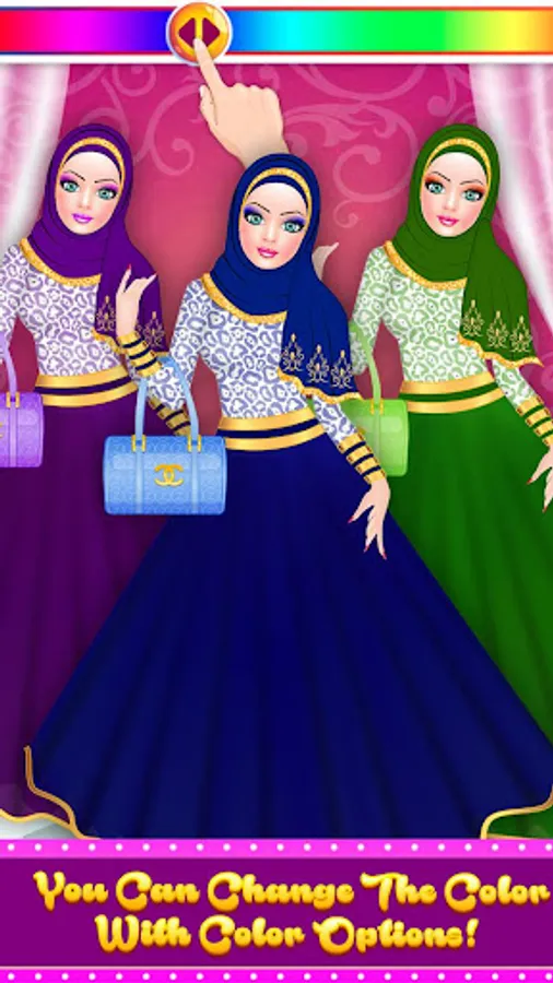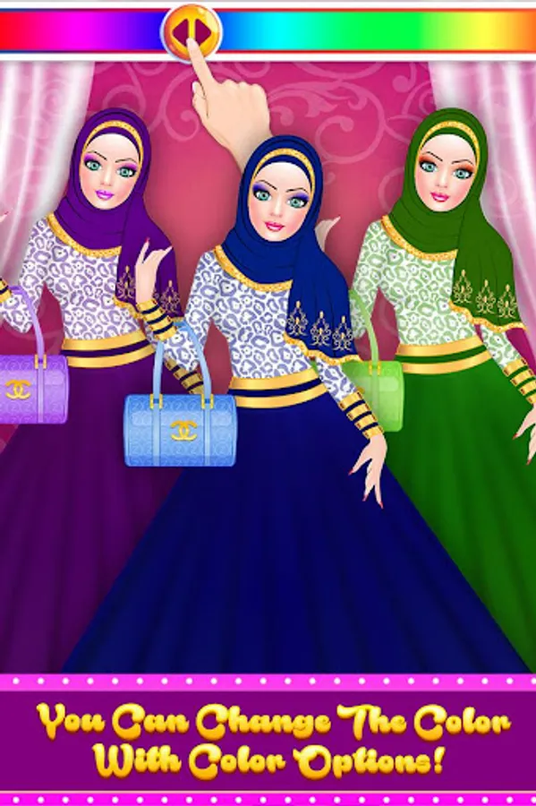 - Choose a dress for your Hijab Doll from bunch of options; you can also change the dress color by sliding the given color option