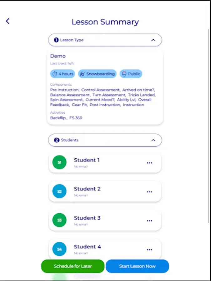 Snofolio, provides non-competitive and competitive snowsport programs with the first-ever, full turnkey solution to training video management. It supplies students with on-slope video movement analytics which build personalized progression portfolios. SnoFolio outfits programs with digital clipboards, these clipboards allow instructors to film students, provide on hill detailed feedback, evaluate the full lesson performance and then send the student, and or parent, a lesson summary, your SnoDay.