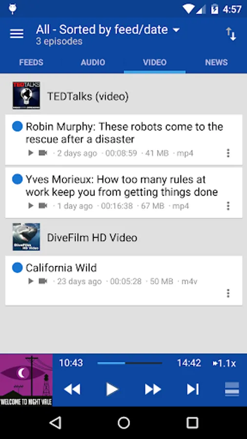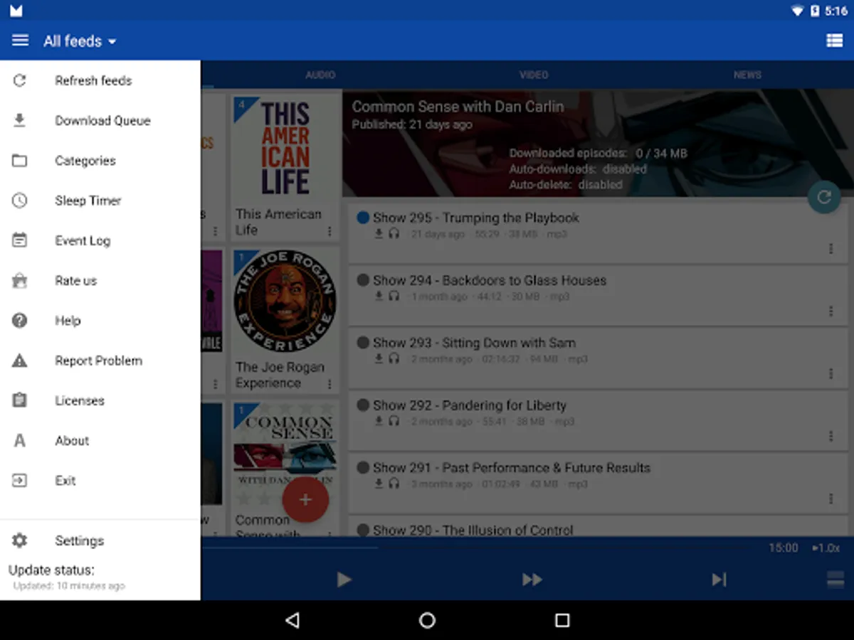Manage your podcasts and news feeds with the first Android Podcatcher.