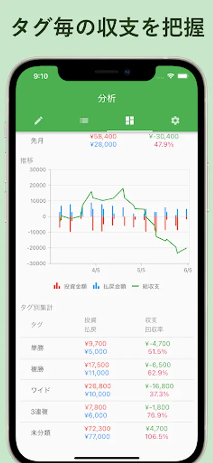 Since the balance of each course, riding ground, weather, tag tag is also displayed, you can analyze the trend of balance.