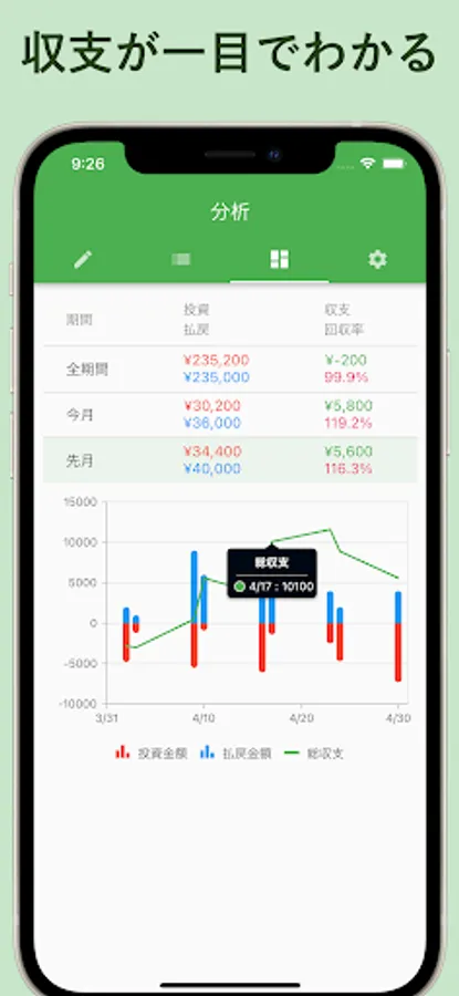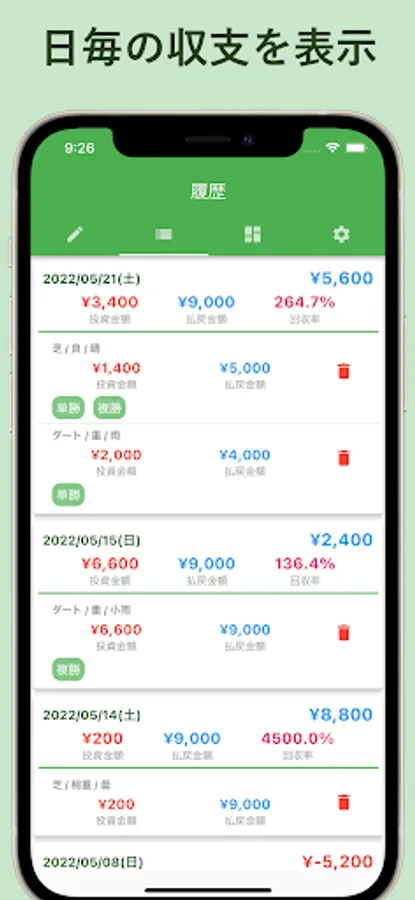 Easy record just by entering investment amount and recovery amount.