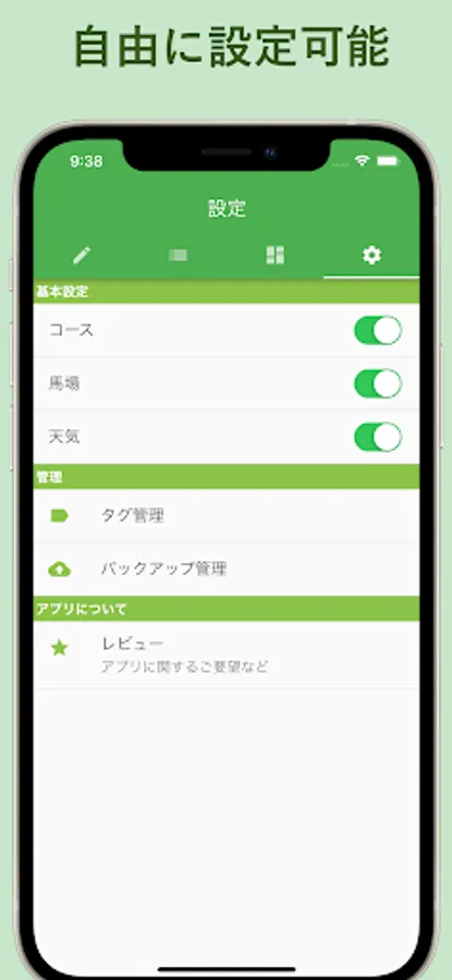 You can set input items such as courses, weather, riding grounds, and tags that can be freely customized.
