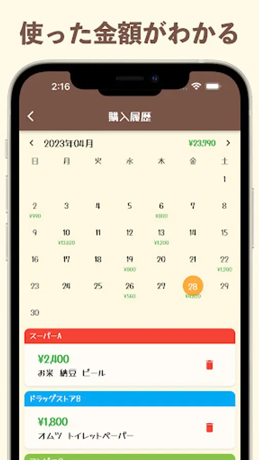 You can also use it as a household account book app because you can see the monthly and daily purchase amount at a glance.