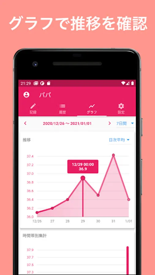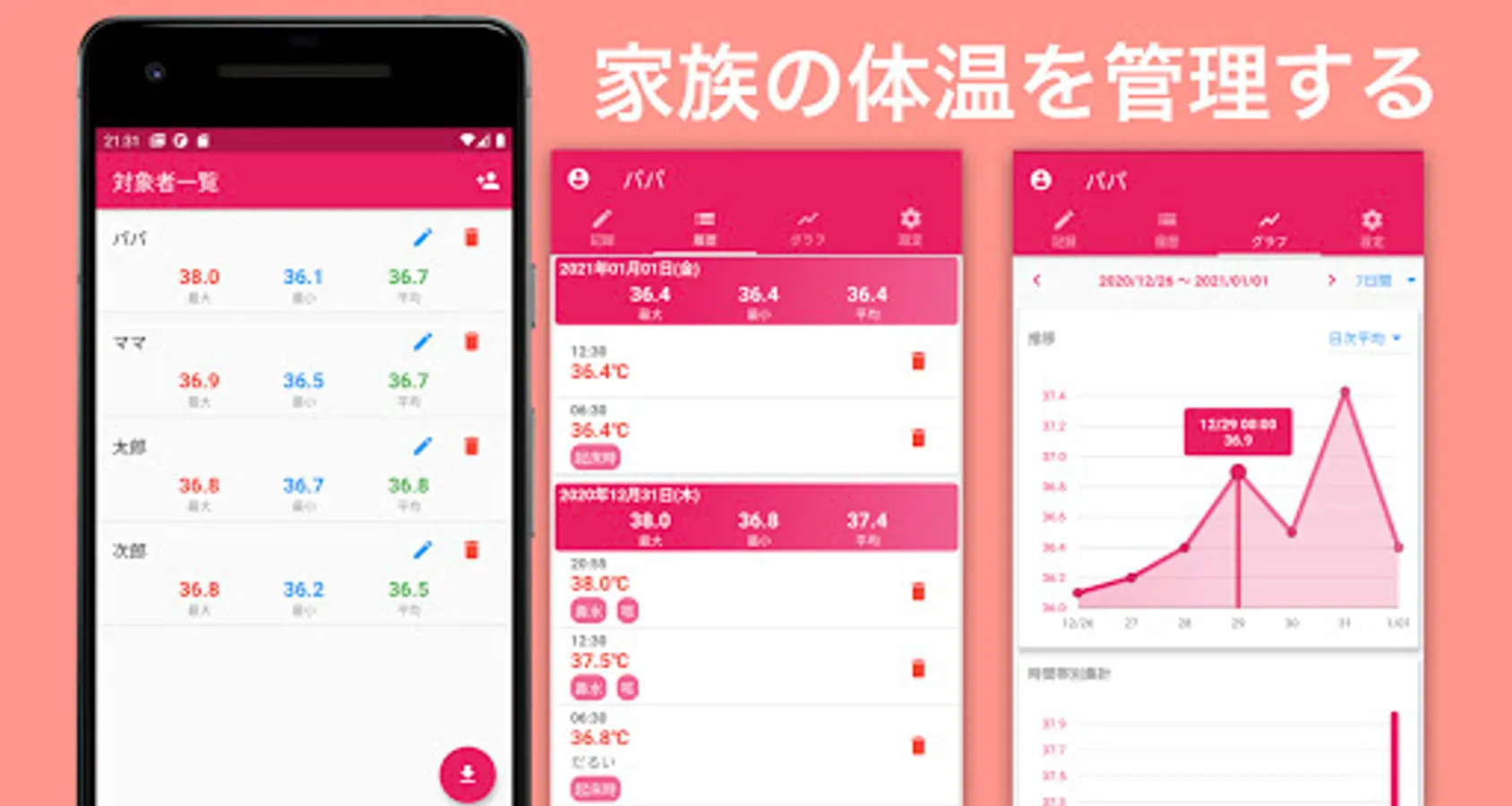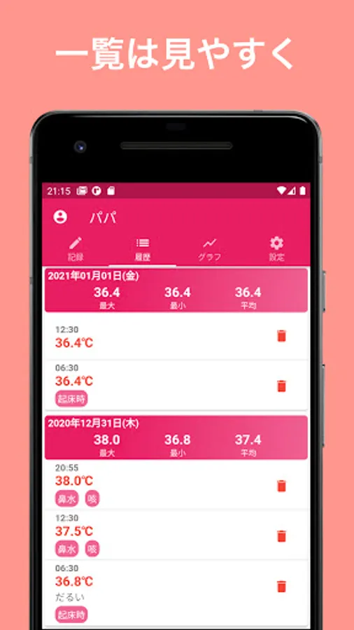 If you are recording multiple times on the same day, the maximum, minimum, and average will also be displayed.