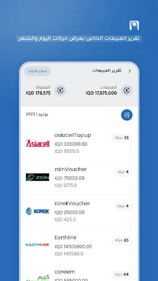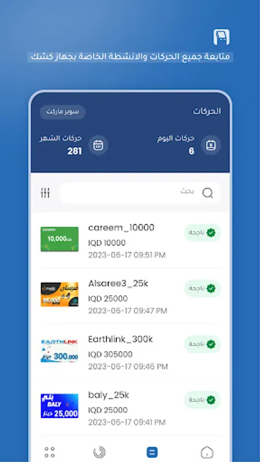 تطبيق خاص بأصحاب اكشاك الخدمة الذاتية المقدمة من شركة أشراقة العصر. التطبيق يمكن مالكي الاجهزة من متابعة مبيعاتهم وحالة الحركات وتفاصيلها. ايضا يحوي على تقارير مفيدة لمعرفة الارباح وقيمة المبيعات اليومية والشهرية.
