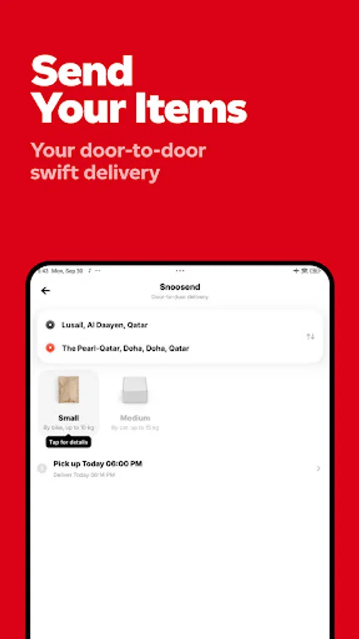 Need something delivered ASAP? Use Snoosend, our on-the-spot delivery service! Simply set the pickup and drop-off locations, describe your item, and let us handle the rest. Perfect for personal errands or business deliveries.