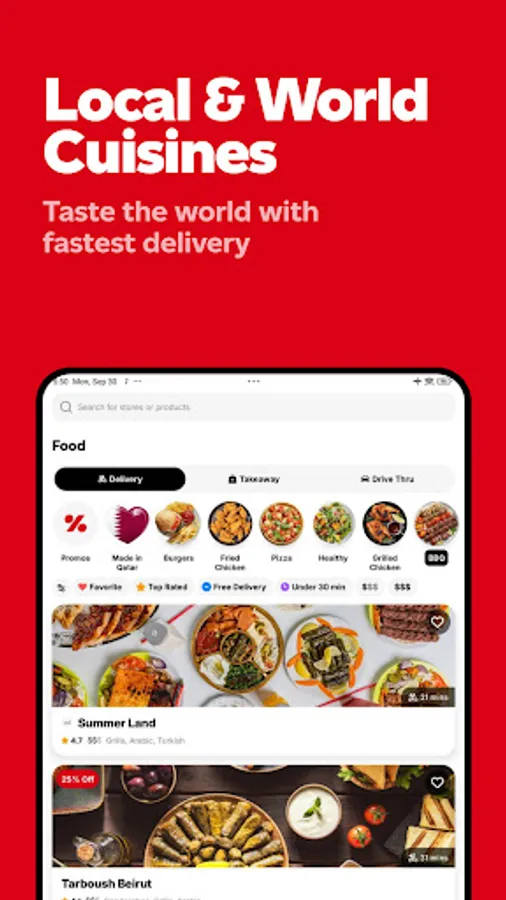 Fuel your hunger with Snoonu's extensive selection of restaurants. Craving sushi, burgers, or healthy eats? We’ve got you covered. Enjoy delicious meals delivered straight to your doorstep or pick up your order effortlessly with our takeaway feature.
