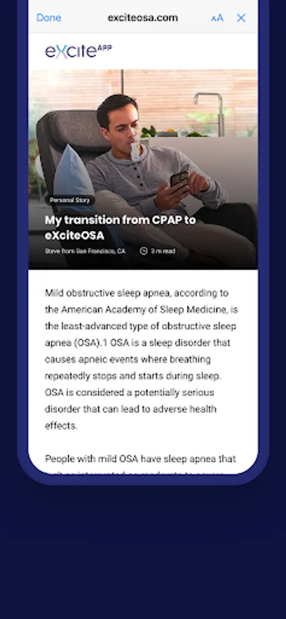 eXciteOSA® is the only daytime solution clinically proven to treat the root cause of mild obstructive sleep apnea (OSA) and snoring, rather than simply relieve the symptoms. The device only needs to be worn for twenty minutes a day, once a day, for six weeks, and twice a week thereafter.