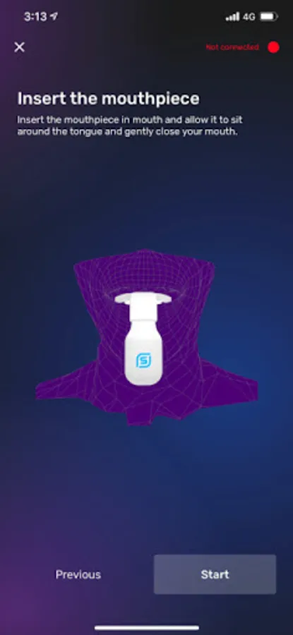 The Snoozeal device is controlled by Snoozeal App. The App connects to the device via Bluetooth to activate the treatment. The App also monitors how often the device has been used, with an additional sleep tracking feature to monitor the change in snoring over time.