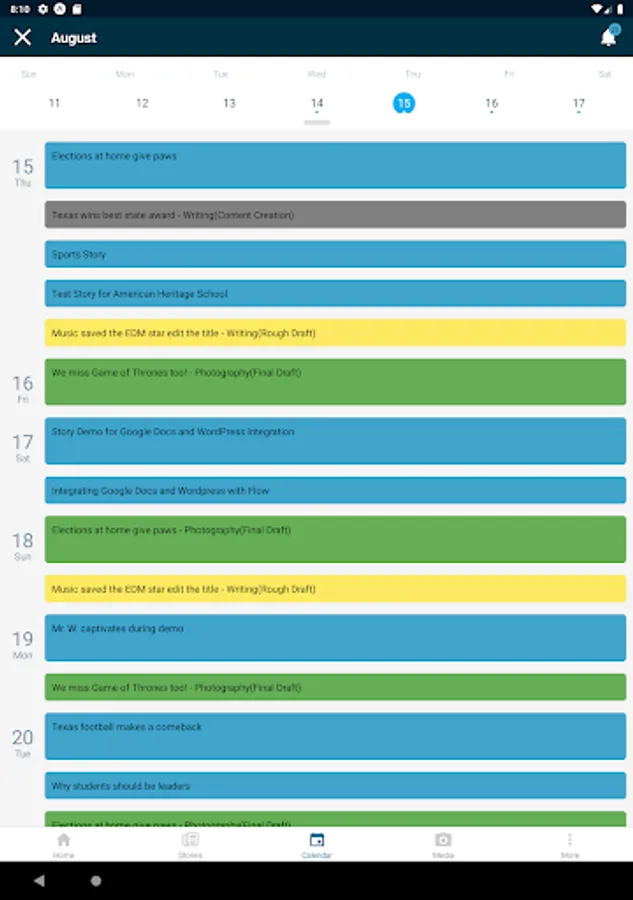 FLOW helps you track each story element through its workflow, from the moment it’s assigned to the moment it’s published. At a glance, editors and advisers can view the status and progress of every article, photo, and video, and FLOW gives them an easy way to communicate with their staff.