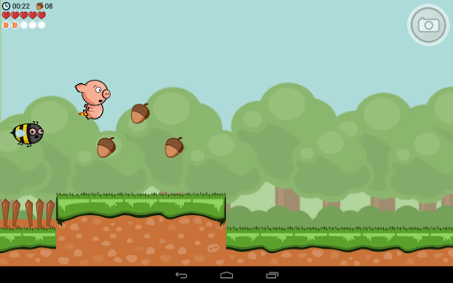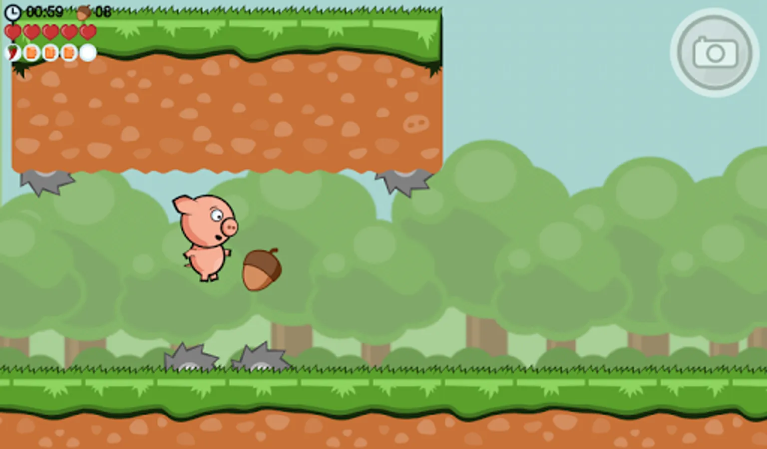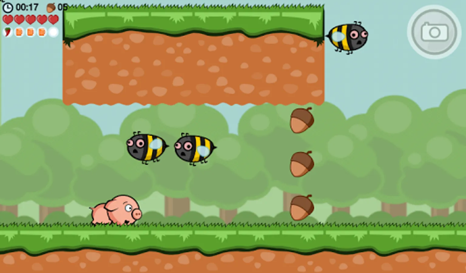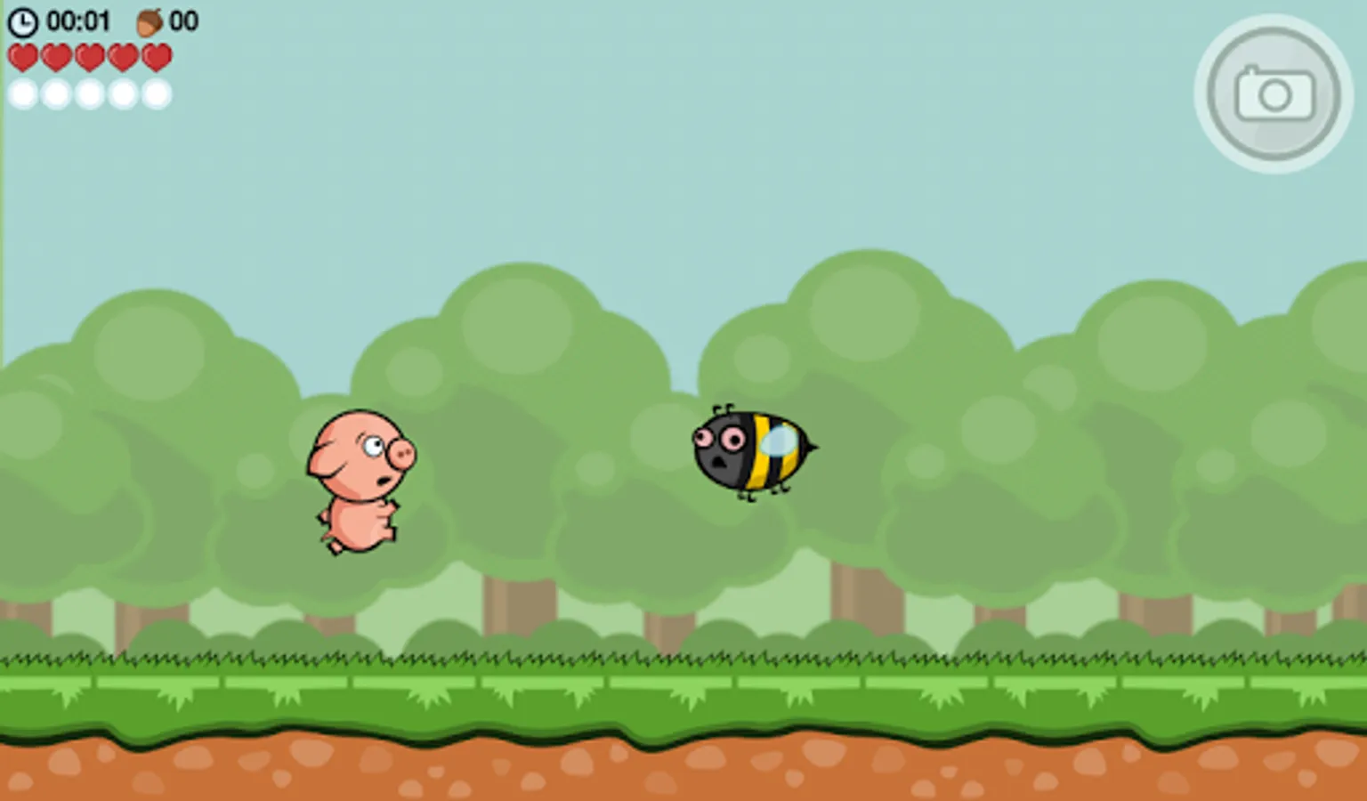 In this pig based running game you must take control of a hyperactive hero piglet called Crisp Bacon to run, jump, crawl, climb, roll and fart through challenging levels in a quest to find his little brother. Use your reaction, skill and highly responsive controls to dodge away from spiky hedgehogs, sharp saw blades and rolling trees. Butt-stomp annoying bees or break wind to stop them from chasing you. Use flatulence amplifiers like chili peppers wisely to gain speed and increase air control. Don’t forget to collect acorns, since squirrel mob doesn’t take wild pigs, trampling their forest, lightly.