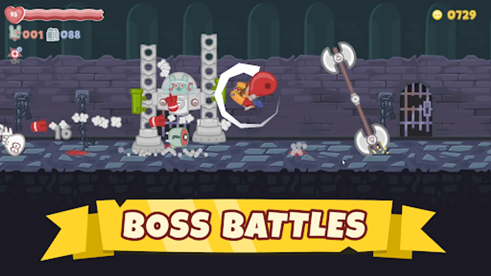 From the developer of Iron Snout comes an action packed sidescrolling fighting game with responsive thumb combat controls, 100 unlockable outfits and weapons, boss fights, charming cartoon 2D graphics and smooth run and gun game play.