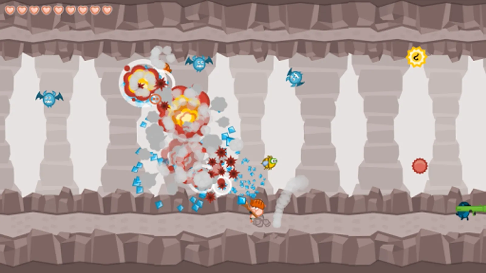 Cave Blast is a fast paced flying and shooting game where you have to fly jetpack around the cave and destroy endless waves of monsters with funny but powerful weapons!
