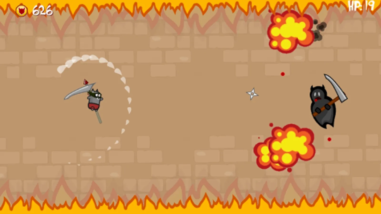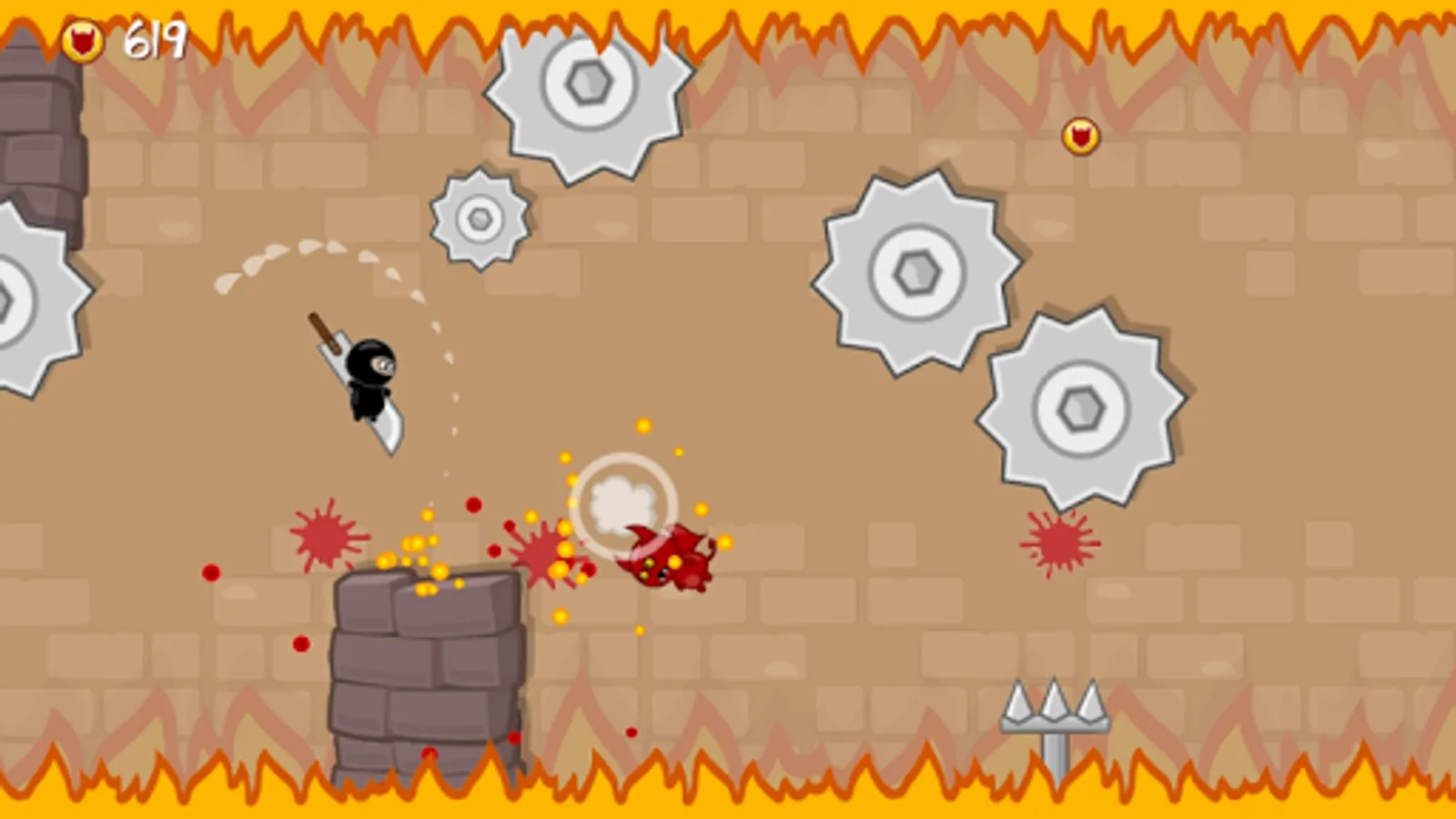 One finger jumps will keep your tiny ninja hero jumping over the deadly spikes, sword fighting annoying fireball imps, blocking blows from demonic devil axes and knocking them back to the fires of hell. Tap your finger twice to do throw ninja stars and destroy fireballs or snipe distant enemies.