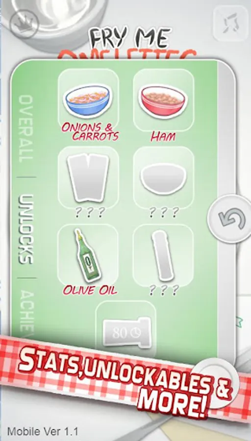 'Fry Me Omelettes' is not like your typical casual cooking game: You as chef, can fry eggs, in whatever fashion you may think of-- A beautiful sunny-side up, a creamy omelette, or a black pile of burnt crap! You will be facing the food critics at their mercy... or the other way round. There'll be unlockables, achievements, stats, leaderboards, and even a record system to view your previous attempts.(egg dishes)