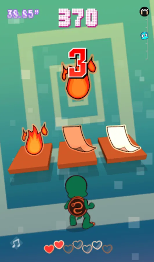 Run the turtle character to the finish line by quick-solving picture quizs.