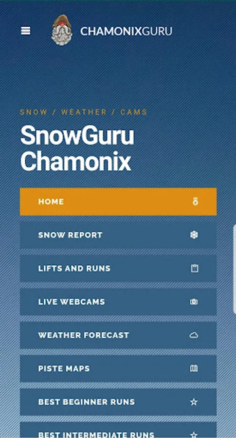 Now includes Live snow conditions, weather forecast, webcams, resort guide, roads and transfer info for the resort of Chamonix, France. Chamonix SnowGuru brings you the mountain information you need most, purely for the resort of Chamonix. The app is split into three sections: SnowGuru, ResortGuru and SkiRoadGuru.