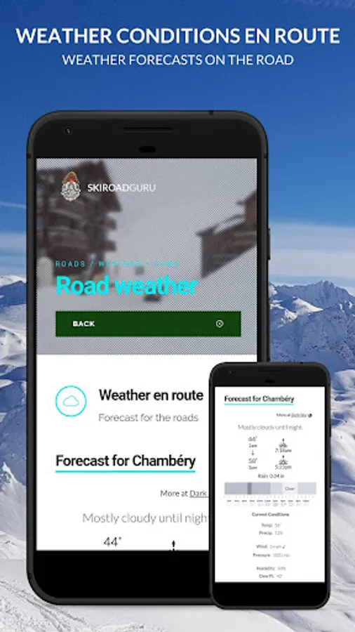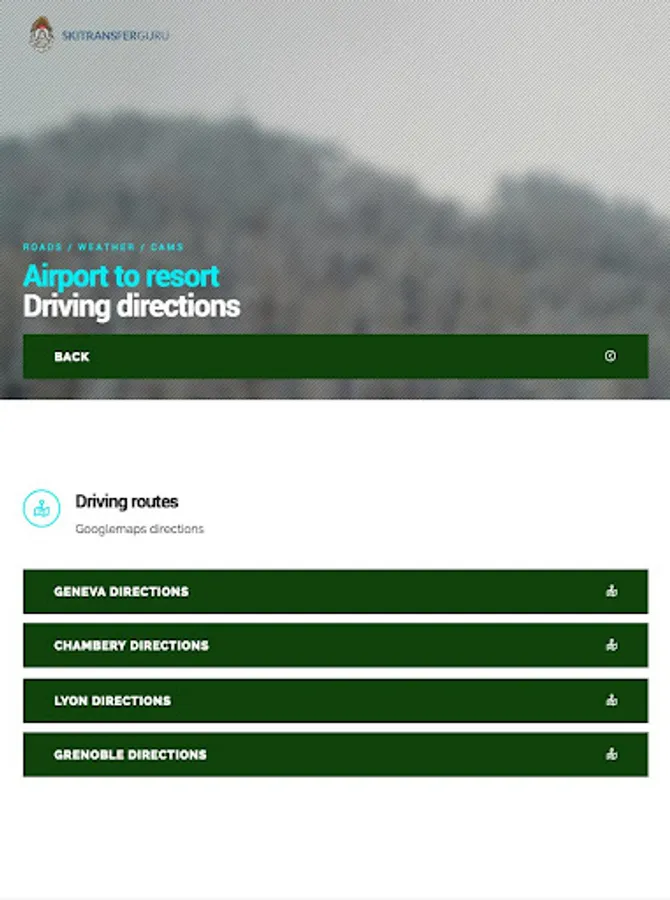 SkiRoadGuru is the only app that helps ski transfer clients see live conditions on the roads and see possible delays in reaching your resort. Get live traffic and transfer news on your phone.