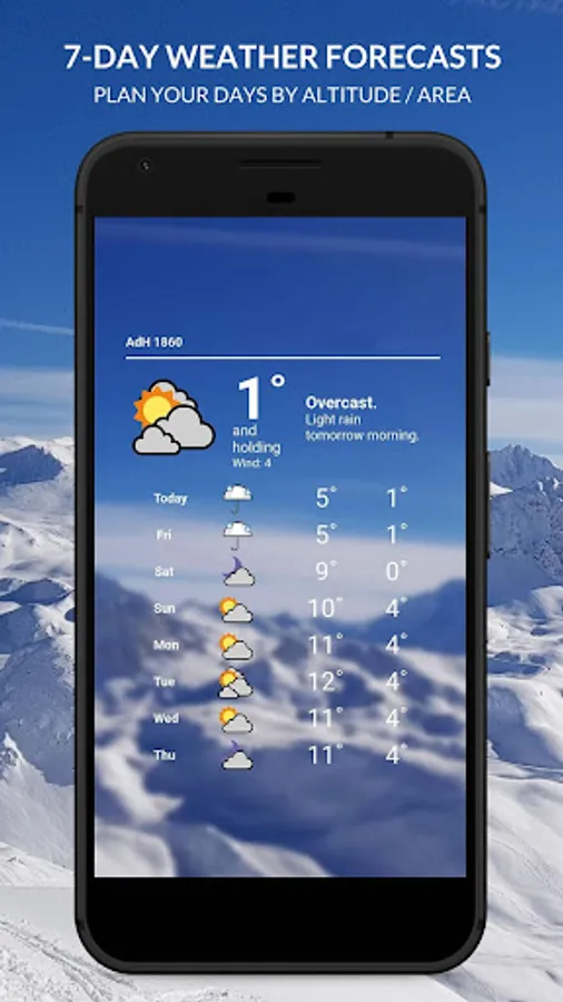 - Detailed lift and trail info, weather by altitude, forecast for today and tomorrow, rain/snow limit, liaison information and summary of conditions.