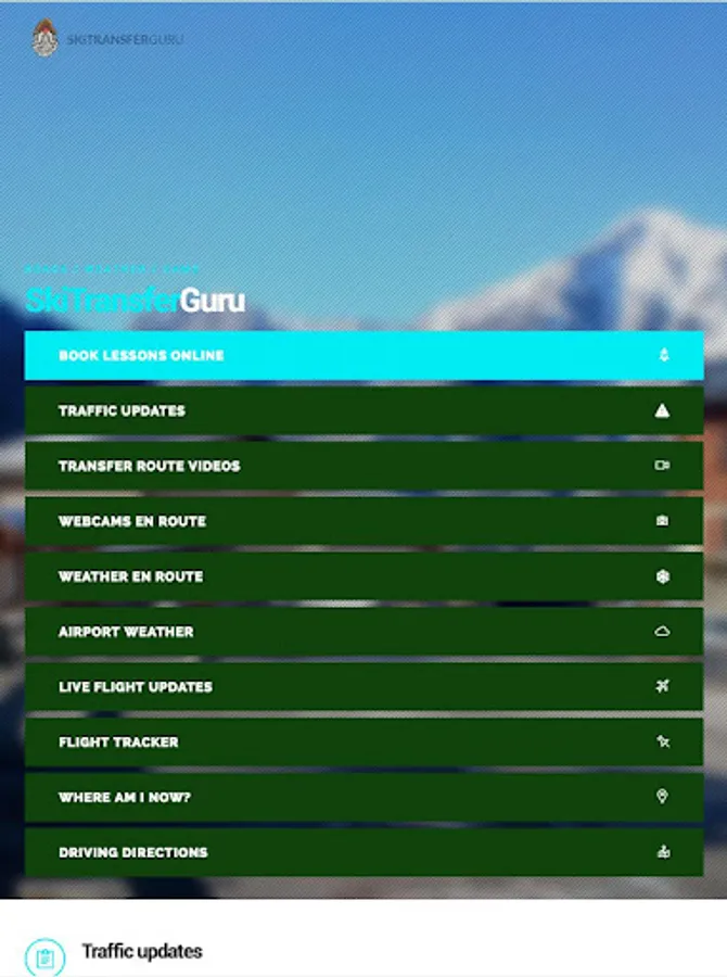 SkiRoadGuru is the only app that helps ski transfer clients see live conditions on the roads and see possible delays in reaching your resort. Get live traffic and transfer news on your phone.