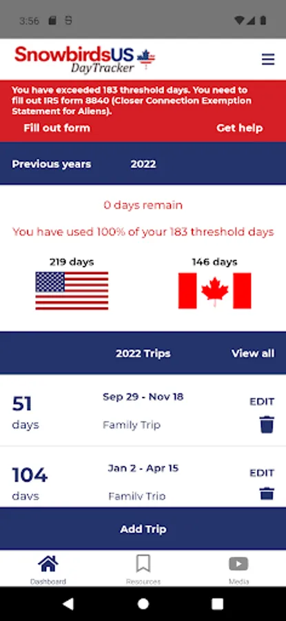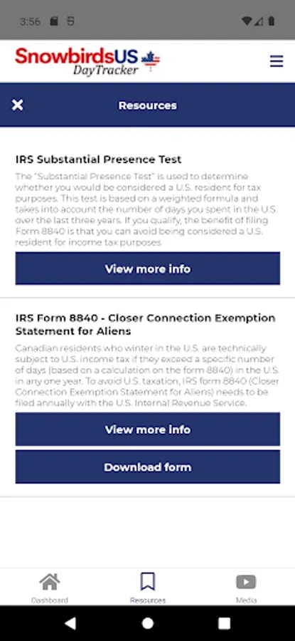 The "Snowbirds US Day Tracker" app helps you track the number of days you’re spending in the USA, which is essential to avoid being classified by the IRS as a US resident for tax purposes.