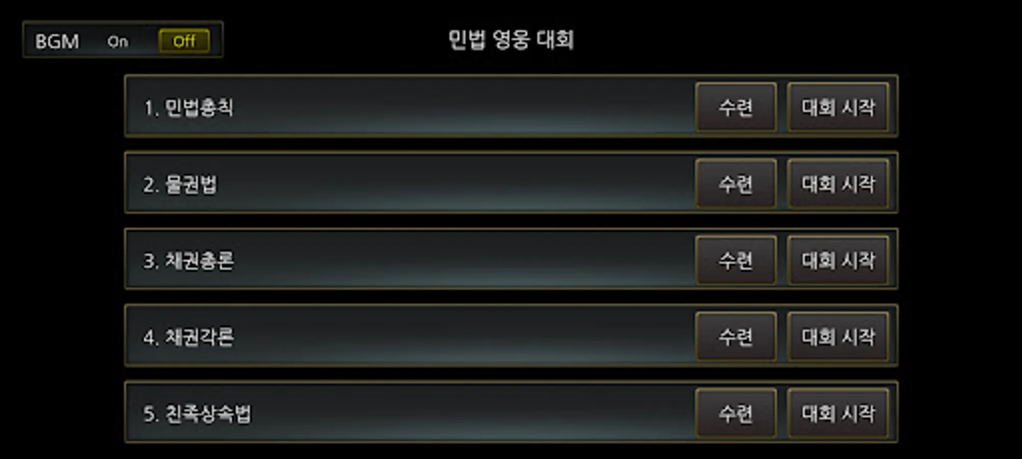 A game that prepares you for the civil law multiple choice exam. Articles of civil law, precedent OX issues appear.