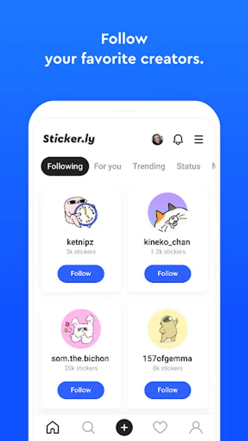 - Follow your favorite creators or artists to get new WA stickers instantly