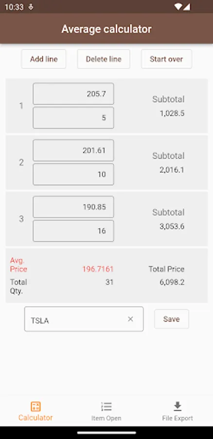 If you enter the purchased price and quantity, the subtotal, total, and average unit price are automatically calculated.
