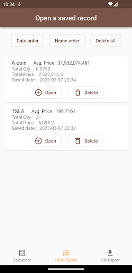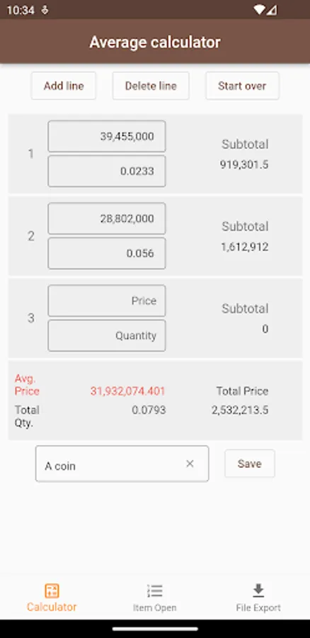 Enter a name and press the save button to save the calculation history to your smartphone for later recall