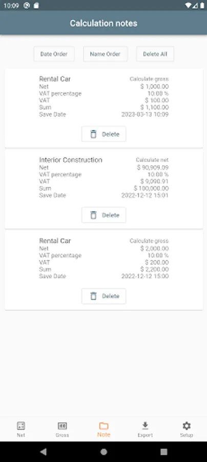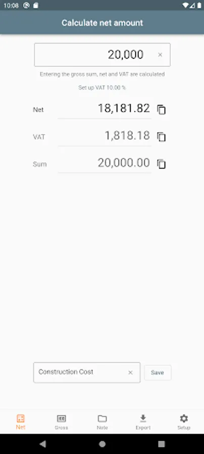 Calculate the net price and VAT separately from the gross including VAT, or calculate the gross with VAT. It is also a convenient app that you can refer to later by putting a title in the calculation result and saving it.