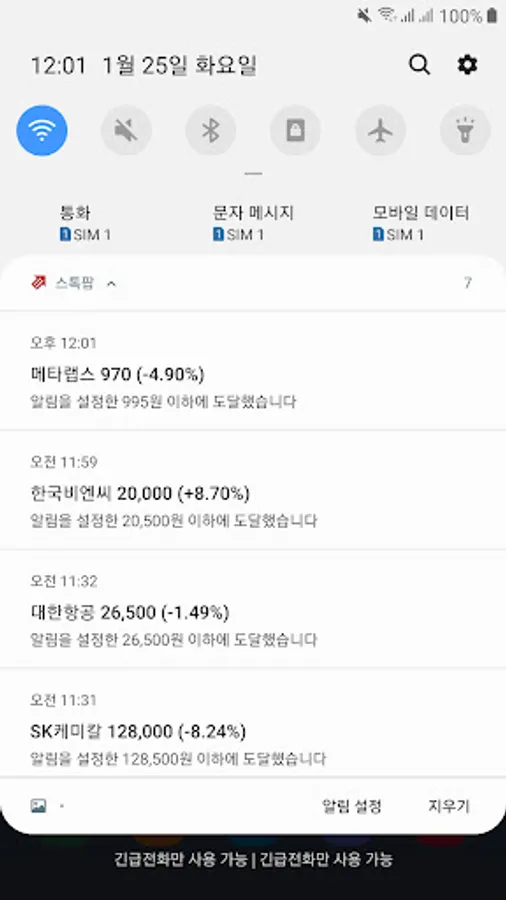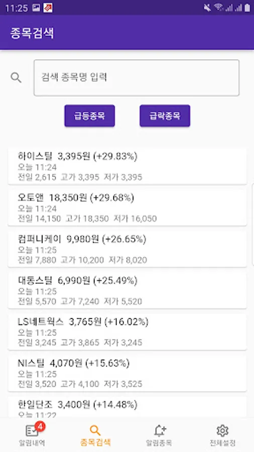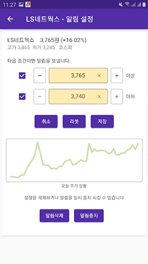 You can set to be notified when the stock price changes by more or less than the current price by searching for the desired stock in the 'Item Search' menu and clicking it.